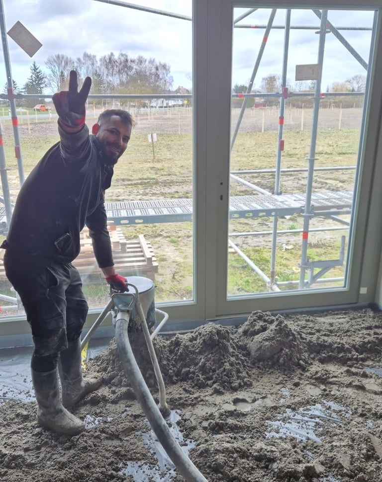 Wir sind ein eingespieltes Estrich‑Team aus Halle (Saale) und verbinden solides Handwerk mit moderner Organisation – freundlich in der Abstimmung, sauber in der Ausführung.